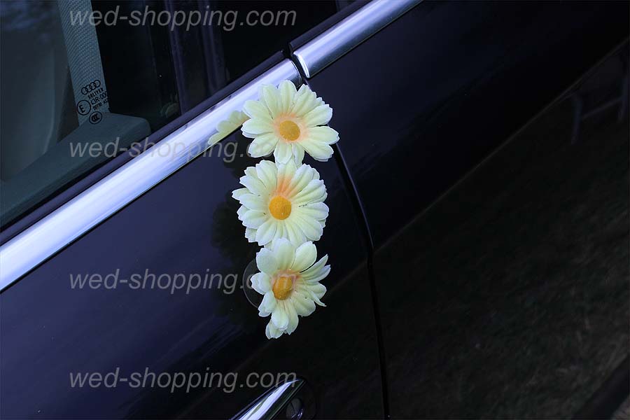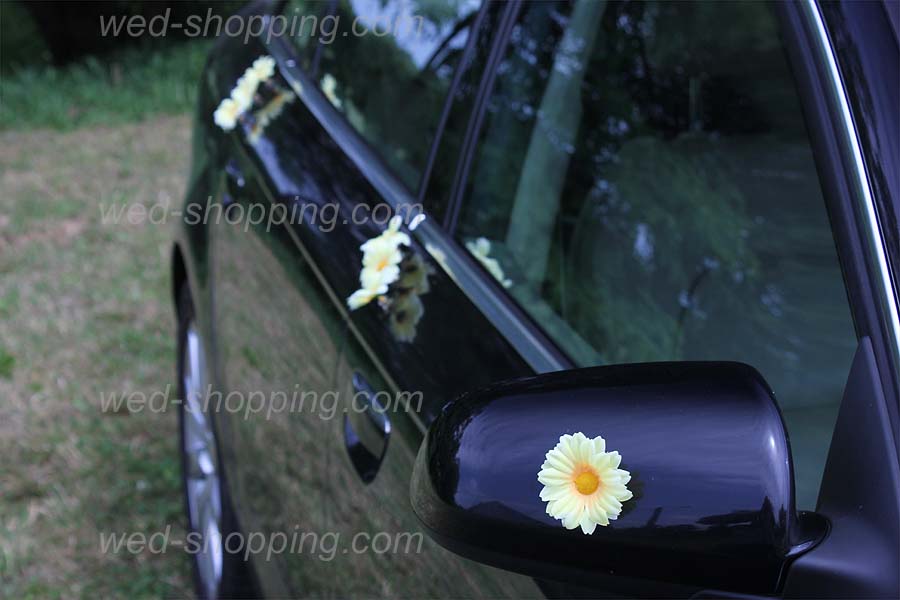Etusivu » Hääkoristeet » Hääauton koristelu » Hääauton koristelu keltainen koiranputkea