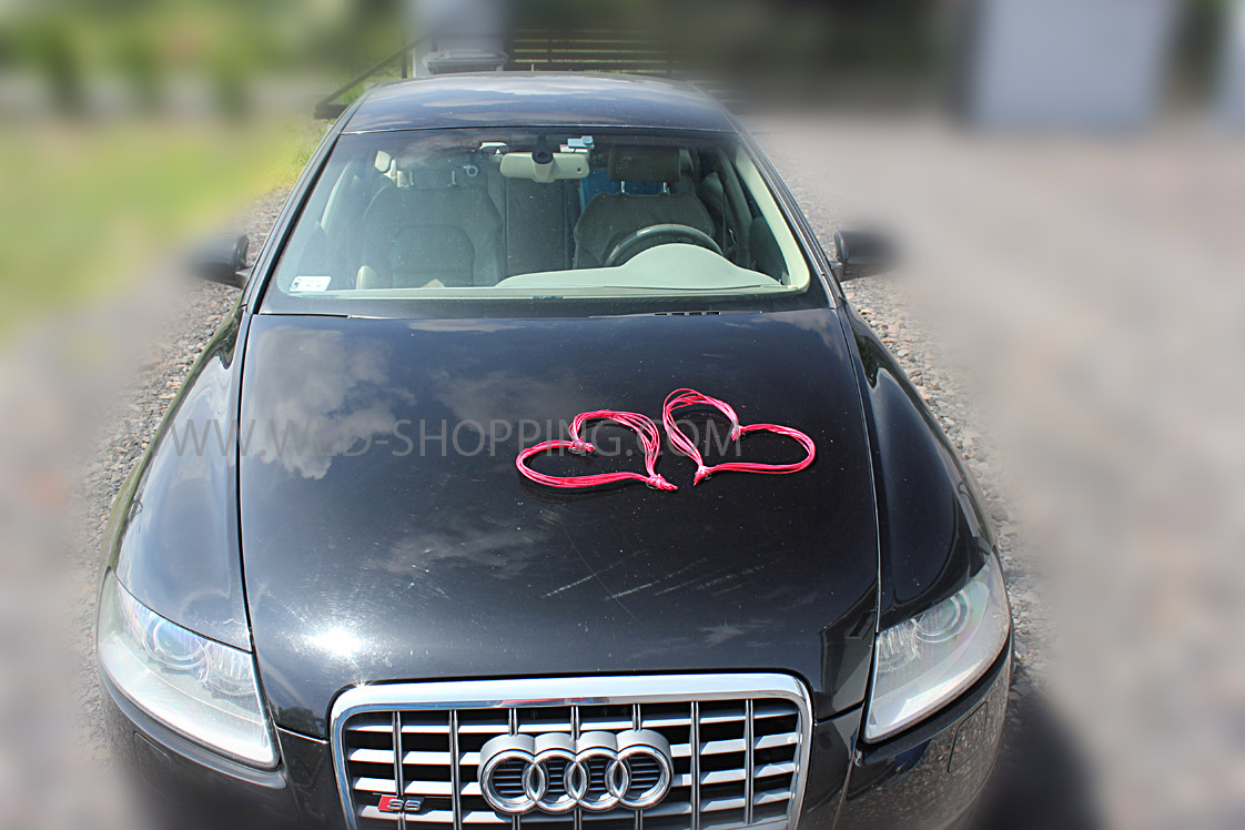 Ainutlaatuinen sisustus valmistettu rottinki ja muovi kukkia. Sarja sisältää: - Kaksi isoa sydäntä, joiden leveys on 30 cm konepellille Kaikki elementit on varustettu imukupilla tukevasti koristeet auton.