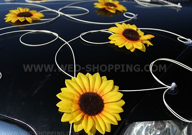 Etusivu » Hääkoristeet » Hääauton koristelu » Koristelu hääauto auringonkukat