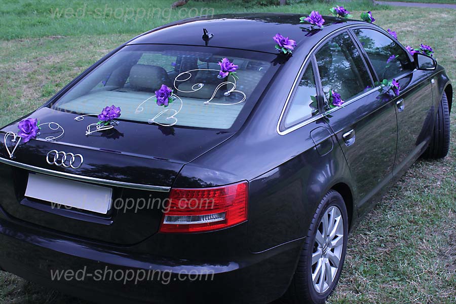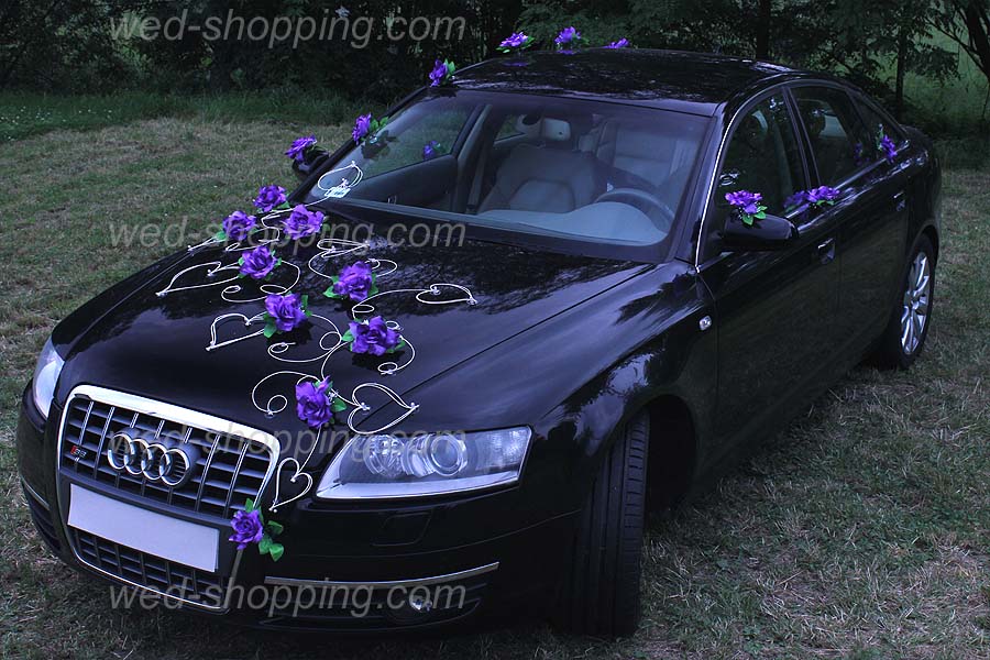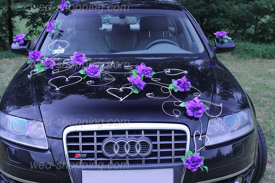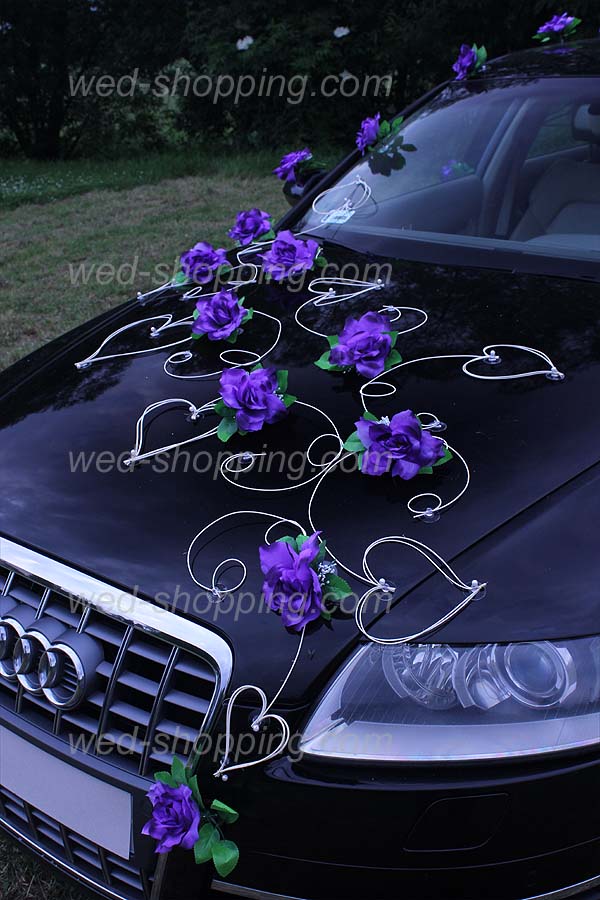 Etusivu » Hääkoristeet » Hääauton koristelu » Koristelu hääauto violetti ruusuja