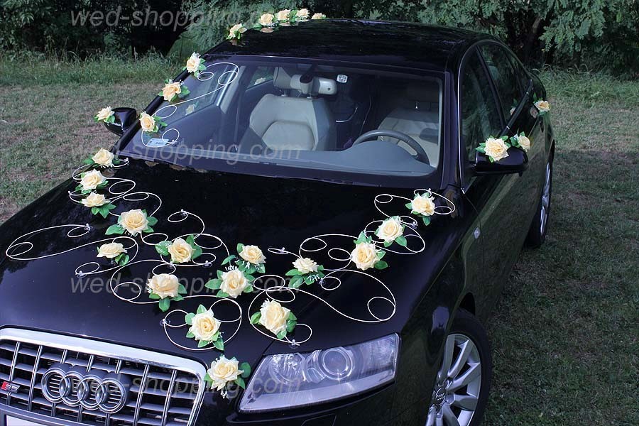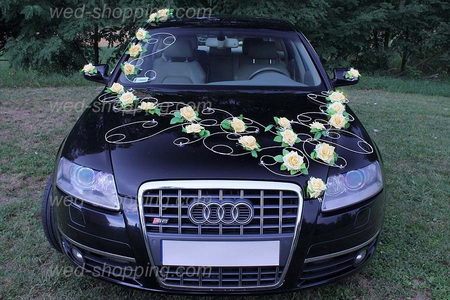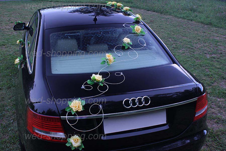 Etusivu » Hääkoristeet » Hääauton koristelu » Kunniamerkki hääauto keltainen-kulta ruusuja