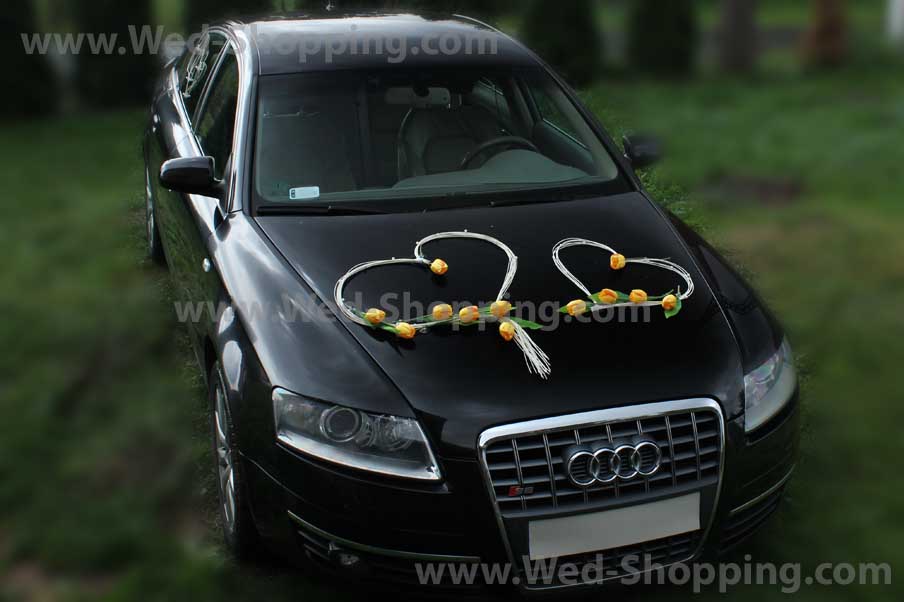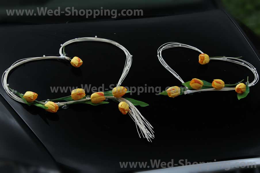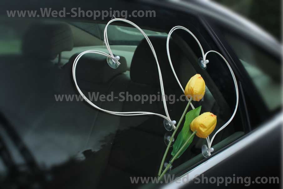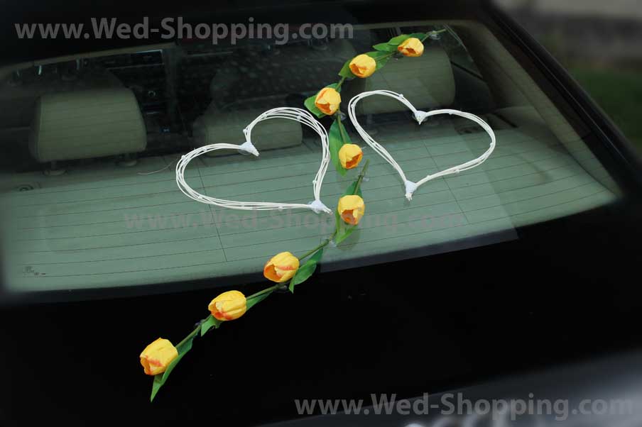 Ainutlaatuinen sisustus autoosi. 2 isoa sydämet koristeltu helmin (asennettu imukupin) 2 sydämiä takaisin lasi - helmiä (imukupilla) 4 sydämiä puolin auton (imukupilla) Joukko tulppaanit imukupilla. Kaikki koristelu on kiinnitetty imukuppi. Imukupit eivät vahingoita auton maali ja tiukasti kiinni koristelu. Sisustus on turvallinen auton maaliin.