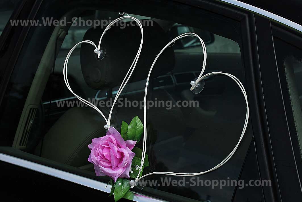 Rottinki sydän ja tumma mauve ruusut Kaksi sydäntä edessä 4 sydäntä puolella auto Kaksi sydäntä takalasin Sisustus turvallisen auton maalipintaan