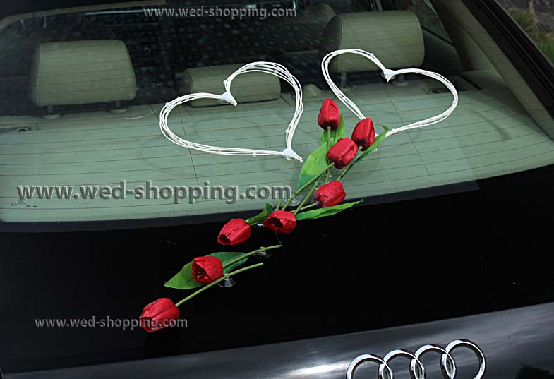 Etusivu » Hääkoristeet » Hääauton koristelu » Kunniamerkki häät auto punaisia ​​tulppaaneja