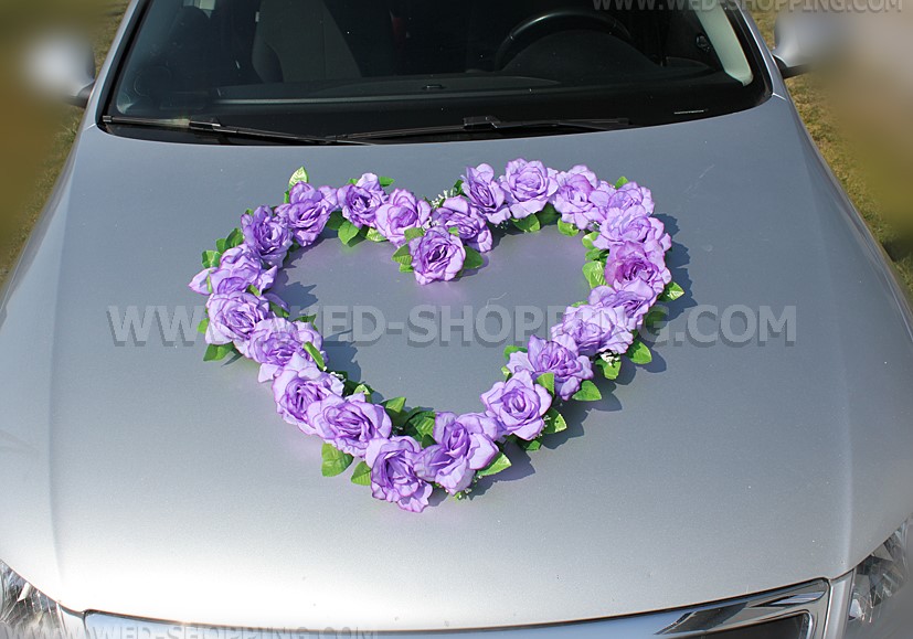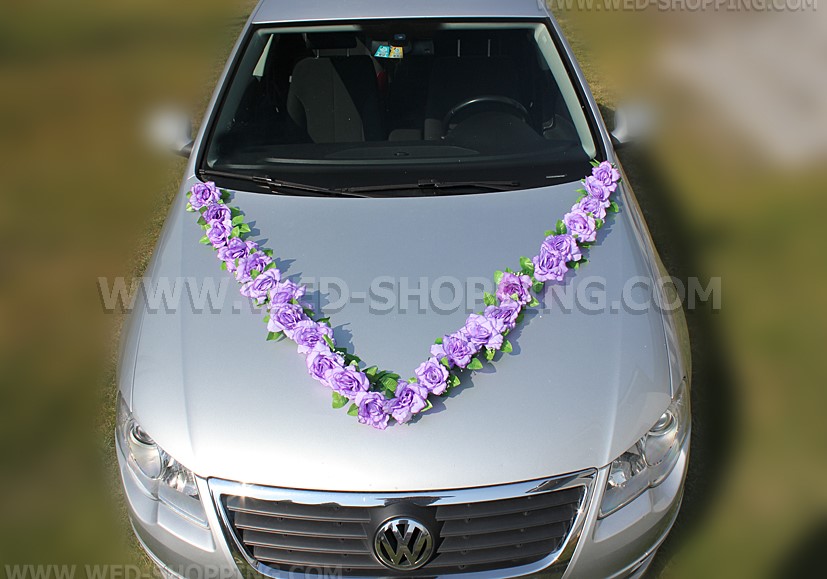 Etusivu » Hääkoristeet » Hääauton koristelu » Lila ruusuja ruusuille auto