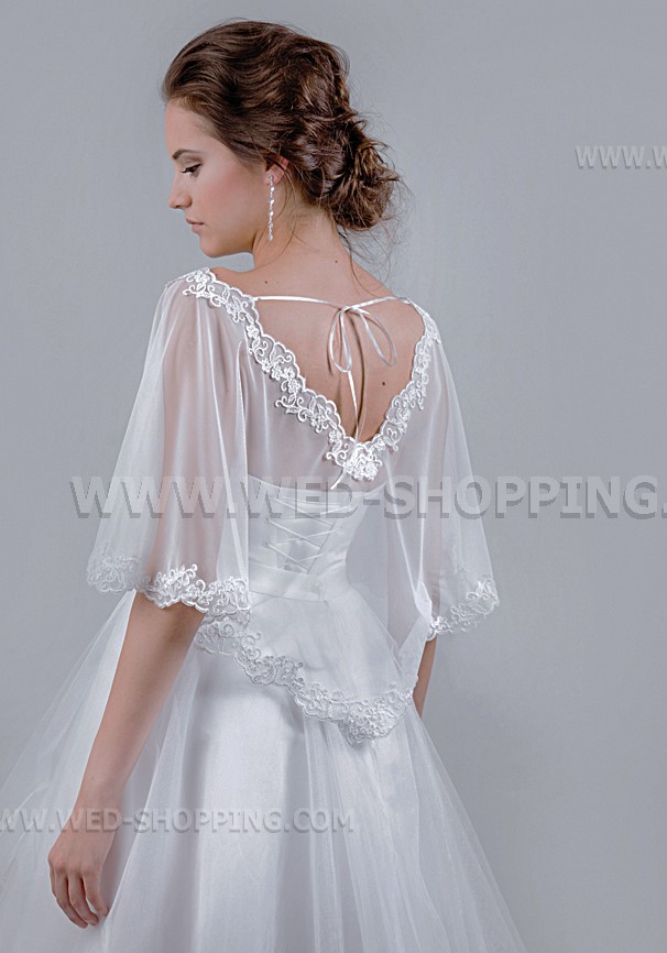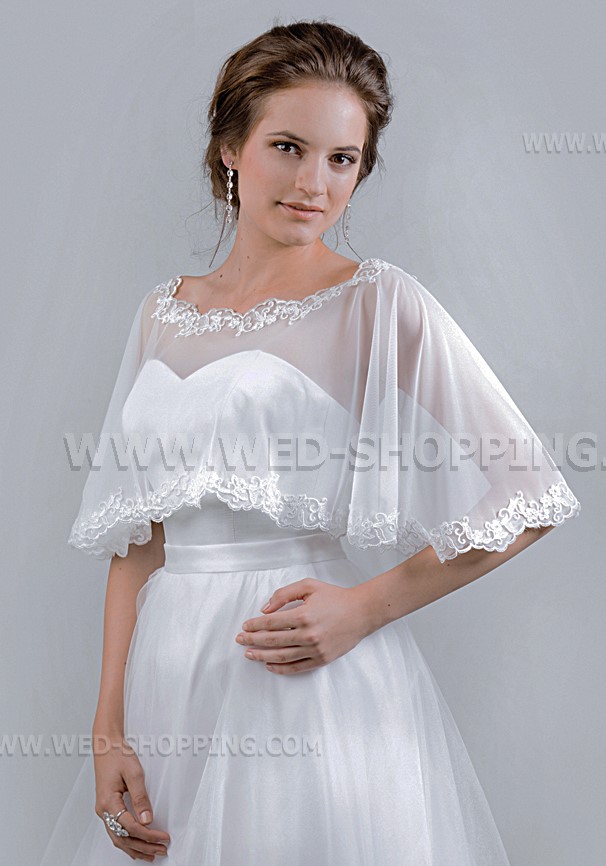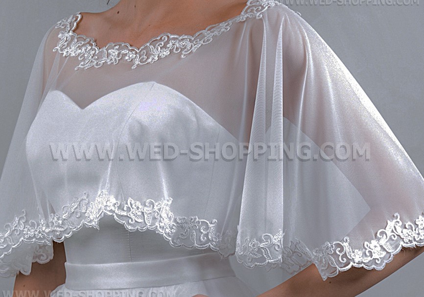Etusivu » Morsiamen takit » Bolero stretch-tylliä » Morsiamen tylli viitta pitsi