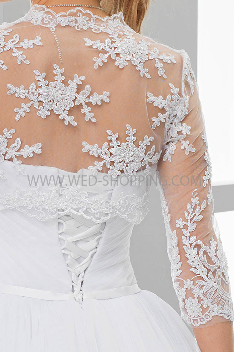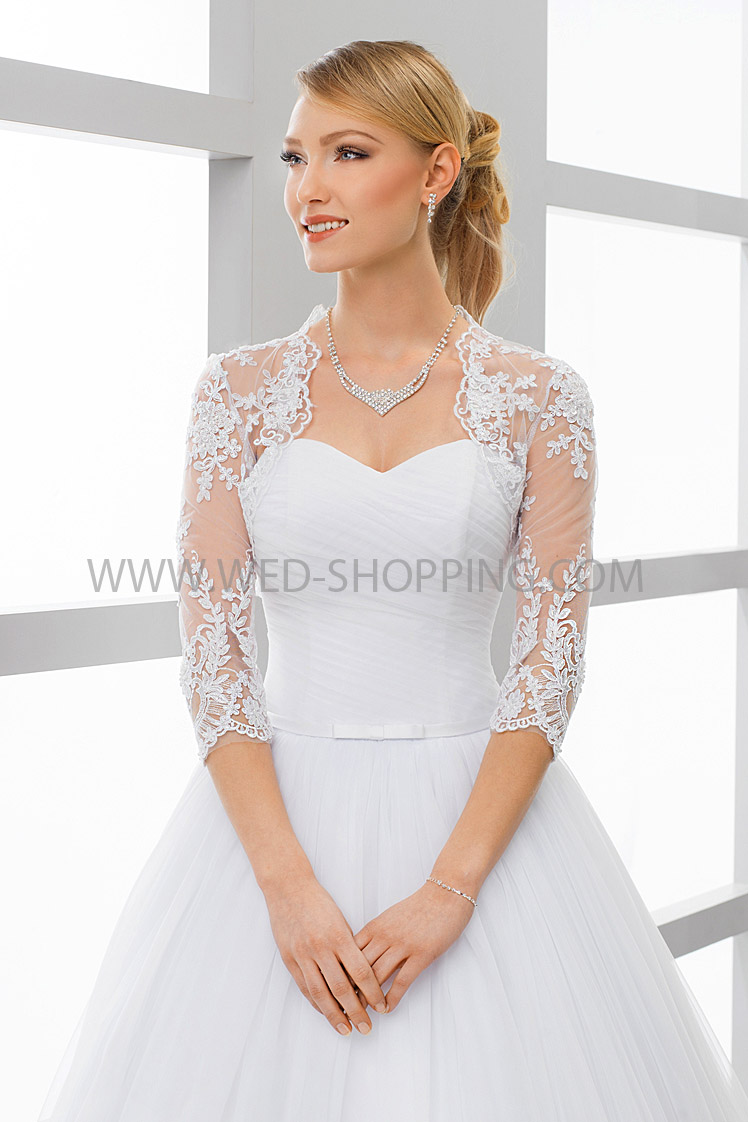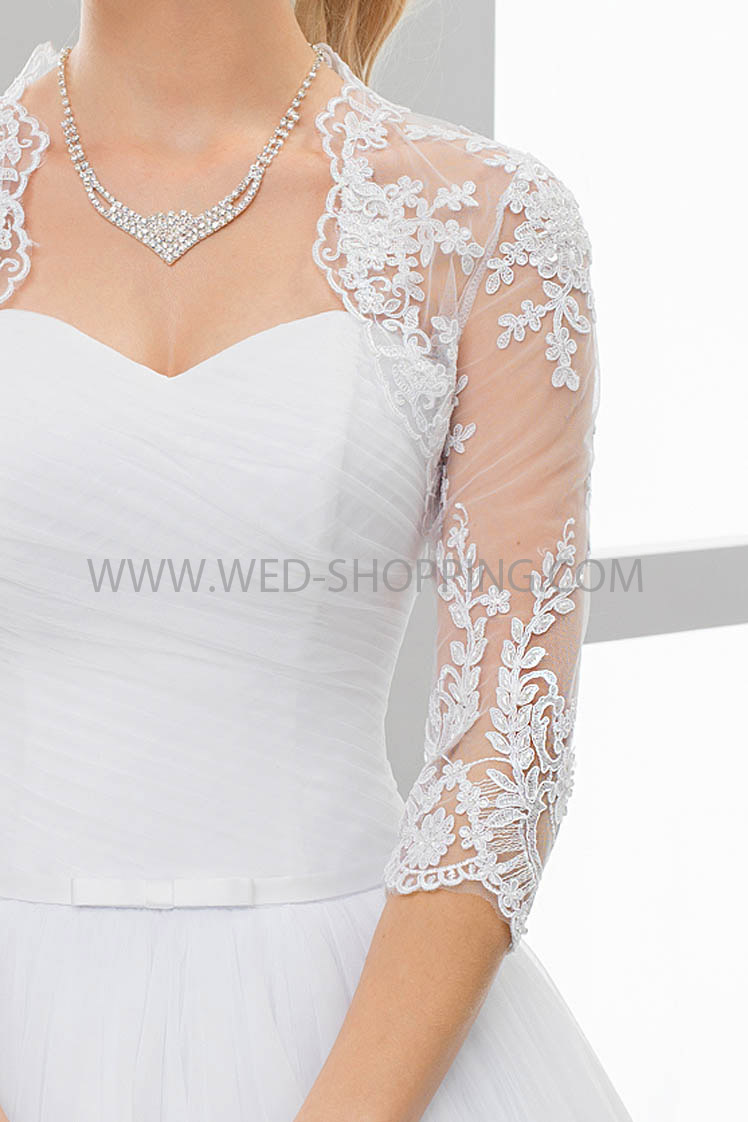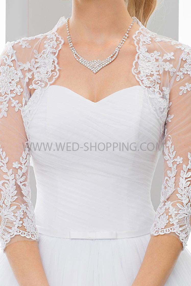 Etusivu » Morsiamen takit » Pitsibolero Toppi » Morsius bolero pitsiä varten hääpuku
