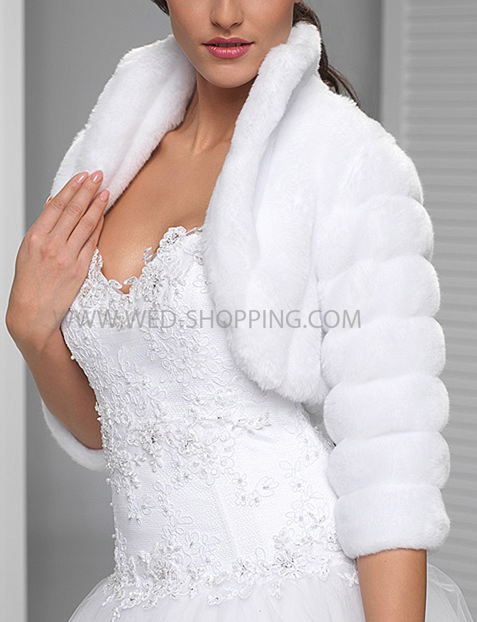 Tekoturkis Bolero - joka sopii erinomaisesti hääpuvun kangas: tekoturkis (minkki) Polyesteri vuori 2/3 hihat Värit valkoinen ja norsunluu, mustana Koot S-7XL (Grande Taille) Toimitusaika 1 viikkoa. Morsius Bolero Tekoturkis