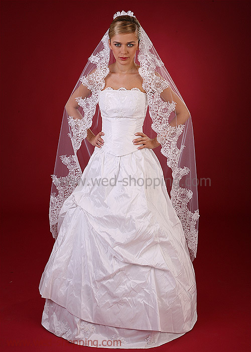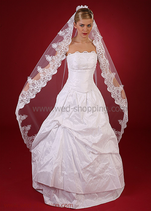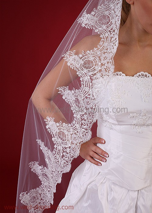 Ylellinen pitsi reunuksinen täyspitkä huntu, pituus 170 cm.