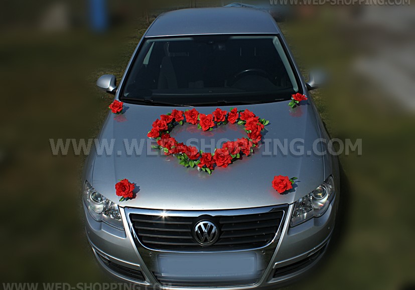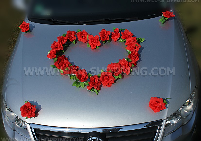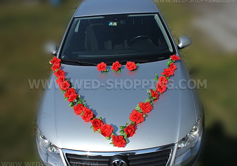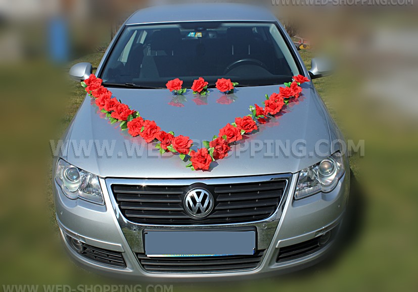 Etusivu » Hääkoristeet » Hääauton koristelu » punaiset ruusut imukupilla