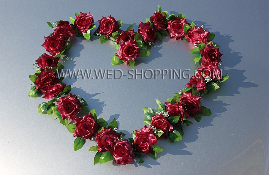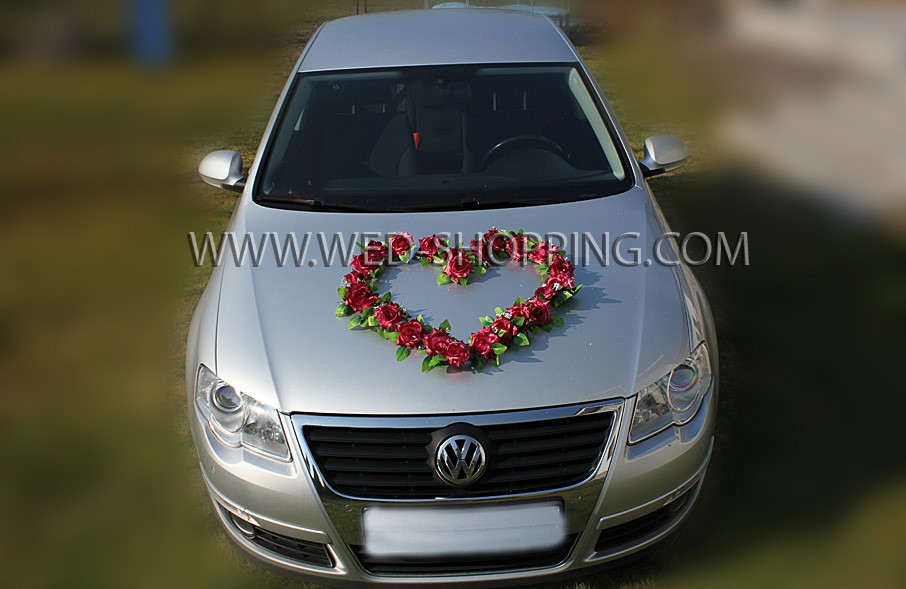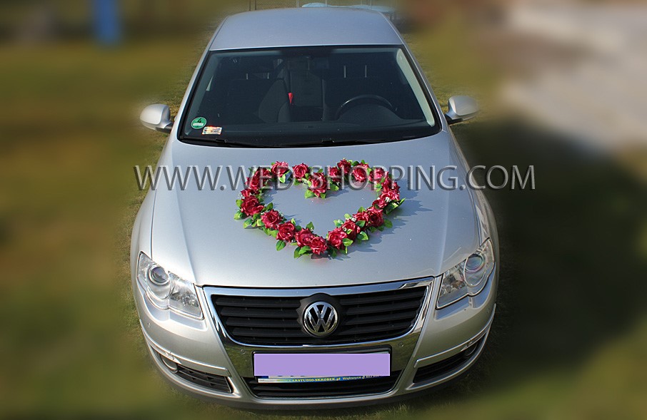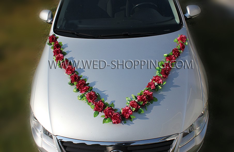 Etusivu » Hääkoristeet » Hääauton koristelu » Punaviini ruusut imukupilla hääauton