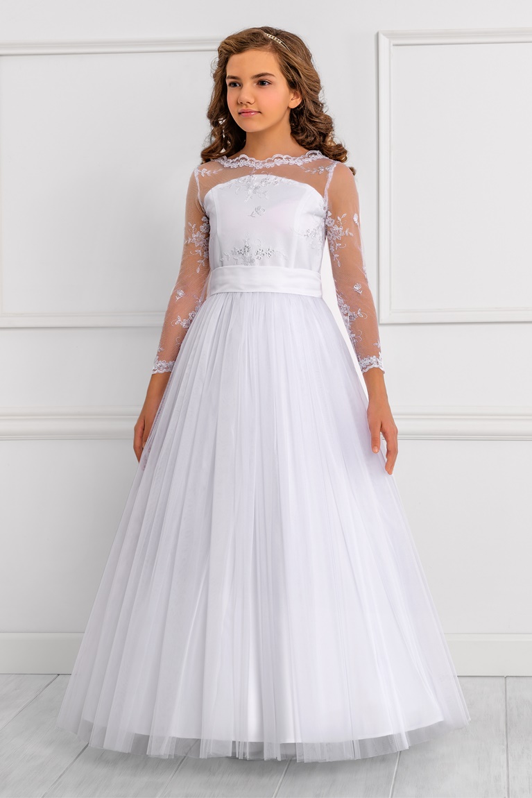 Avec son ourlet ample et élégant, cette robe longue sera la tenue parfaite pour les petites filles qui souhaitent briller lors de leur première communion.