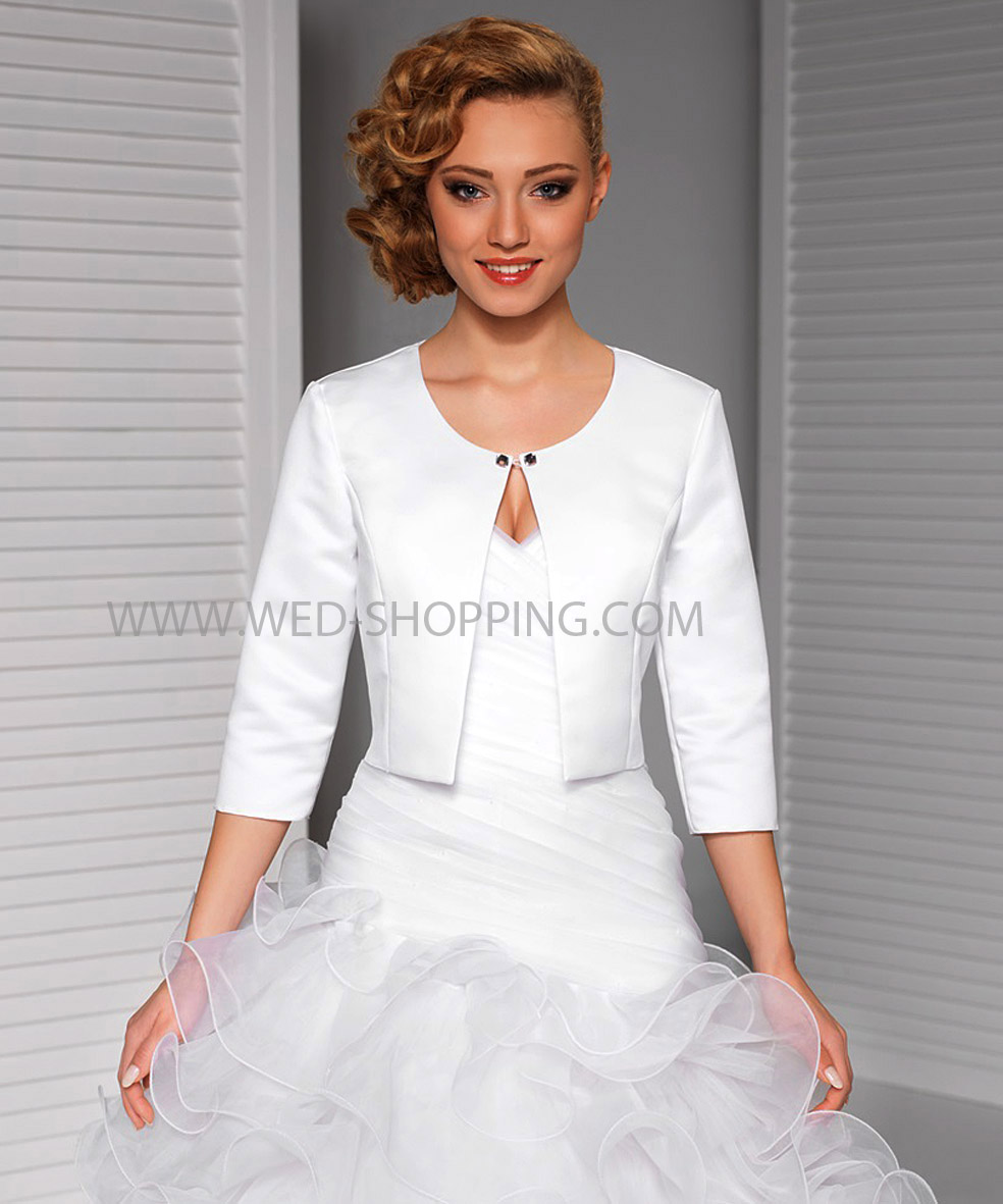 Morsius bolero kangas: satiinia 3/4 hihat Värit valkoinen ja ivory Koot S-XXXL Toimitusaika 1 viikkoa.